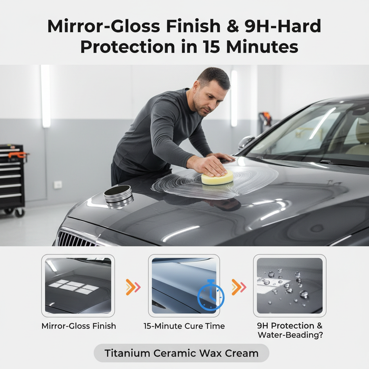 Clean and dry your carβs surface. Hand-apply our Titanium Ceramic Wax Cream with a soft applicator cloth, let it cure for 15 minutes, then buff off for a mirror-like shine.